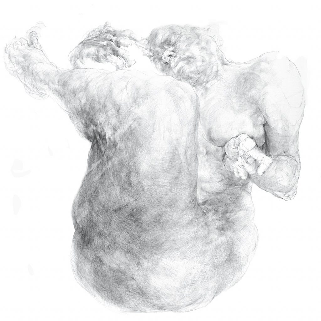 So kam ich auf den Gedanken meine Zeichnungen wie gute Freunde zu behandeln. Ich besuche sie immer wieder und trete mit ihnen in Kommunikation. Auf diese Weise arbeite ich an mehreren grossen Formaten gleichzeitig, erstelle kleinformatige Serien und lerne aus meinen Skizzenbüchern. Die eine Zeichnung beeinflusst die andere. Einige verweilen bis sie wieder anfangen zu sprechen.